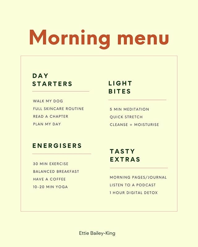 I list optional parts of my morning routine, which allows me to break free of perfectionism and maintain habits that set me up nicely for the day.